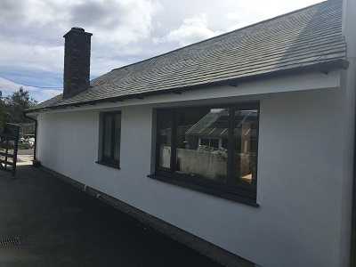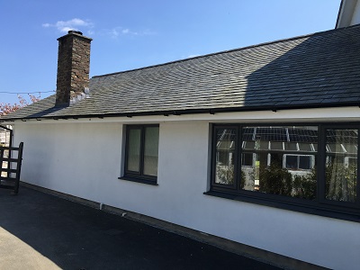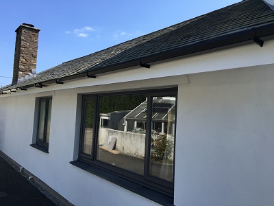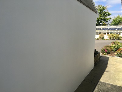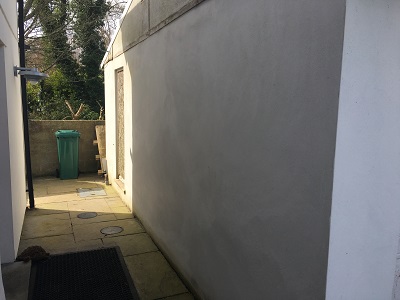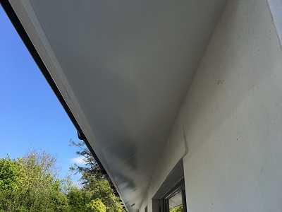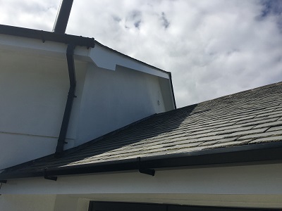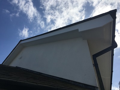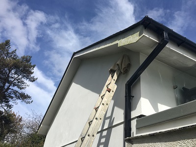 This customer wanted the fascia boards-soffits & barge boards re-painted, she also needed the gutters clearing out & washed off plus some of the walls needed freshening up, I used a water based zinnser exterior satin paint on the wood work and Leyland paint on the masonry walls.