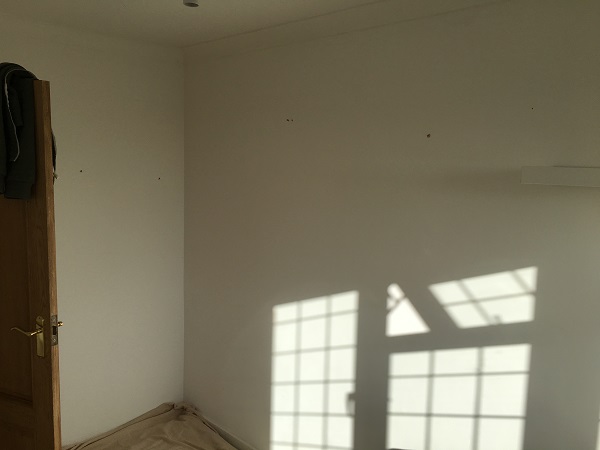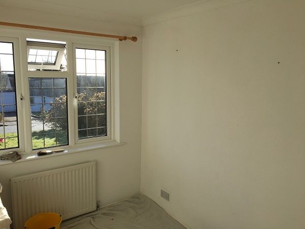 This home owner lives in Falmouth & needed her bedroom freshened up, there was old wall paper on the ceiling that needed coming off & holes in the walls that needed filling in, here are some pictures of what it looked like when it was finished.