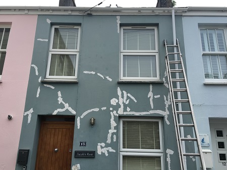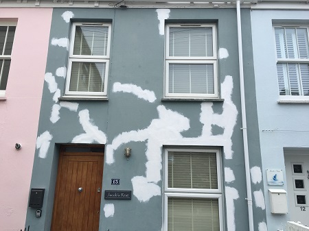 This is another holiday home for one of my customers and he wanted his front painted, i washed the walls off with hypo chloride then filled in the cracks and sealed them with a Leyland all purpose primer then put two coats of Valspar exterior masonry on the walls, the owner was very happy when i finished.