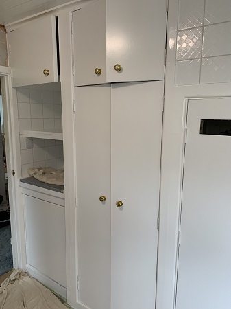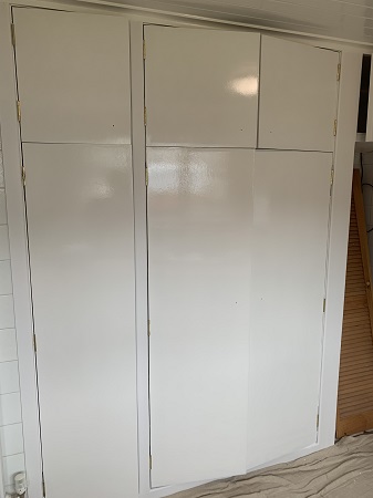 This property belongs to one of my regular customers and she needed her new cupboard doors and frames painted white, i used a Dulux wood primer followed by two undercoats then a dulux satinwood for the top coat, she was very pleased when i finished.