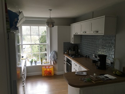 This customer asked me to paint her kitchen-diner as they had recently moved in to the area & wanted a change of colour, I used a Leyland trade brilliant white on the ceiling then a Valspar Premium colour on the walls, they wanted a satin finish on the wood work so I used a dulux trade satin wood. Here are a few pictures of the finished product.
