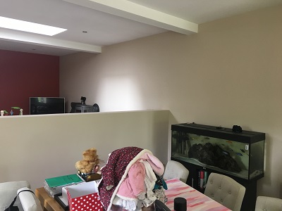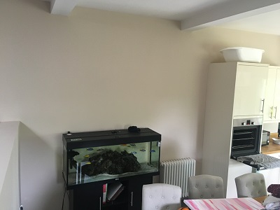 Here are some pictures of a job I completed two months ago, the customer wanted her lounge-kitchen painted a different colour, I used a dulux vinyl matt.